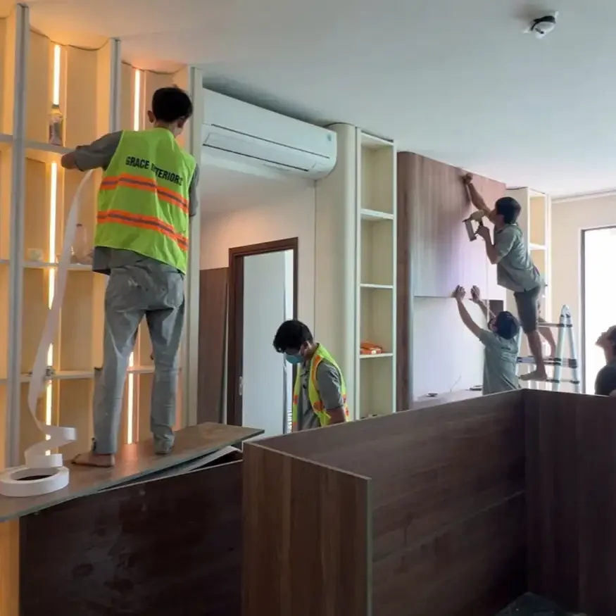 Nghiệm thu từng hạng mục và bàn giao không gian với checklist đầy đủ. Bảo hành & hỗ trợ theo tiêu chuẩn từng gói, luôn sẵn sàng xử lý khi khách cần trợ giúp.